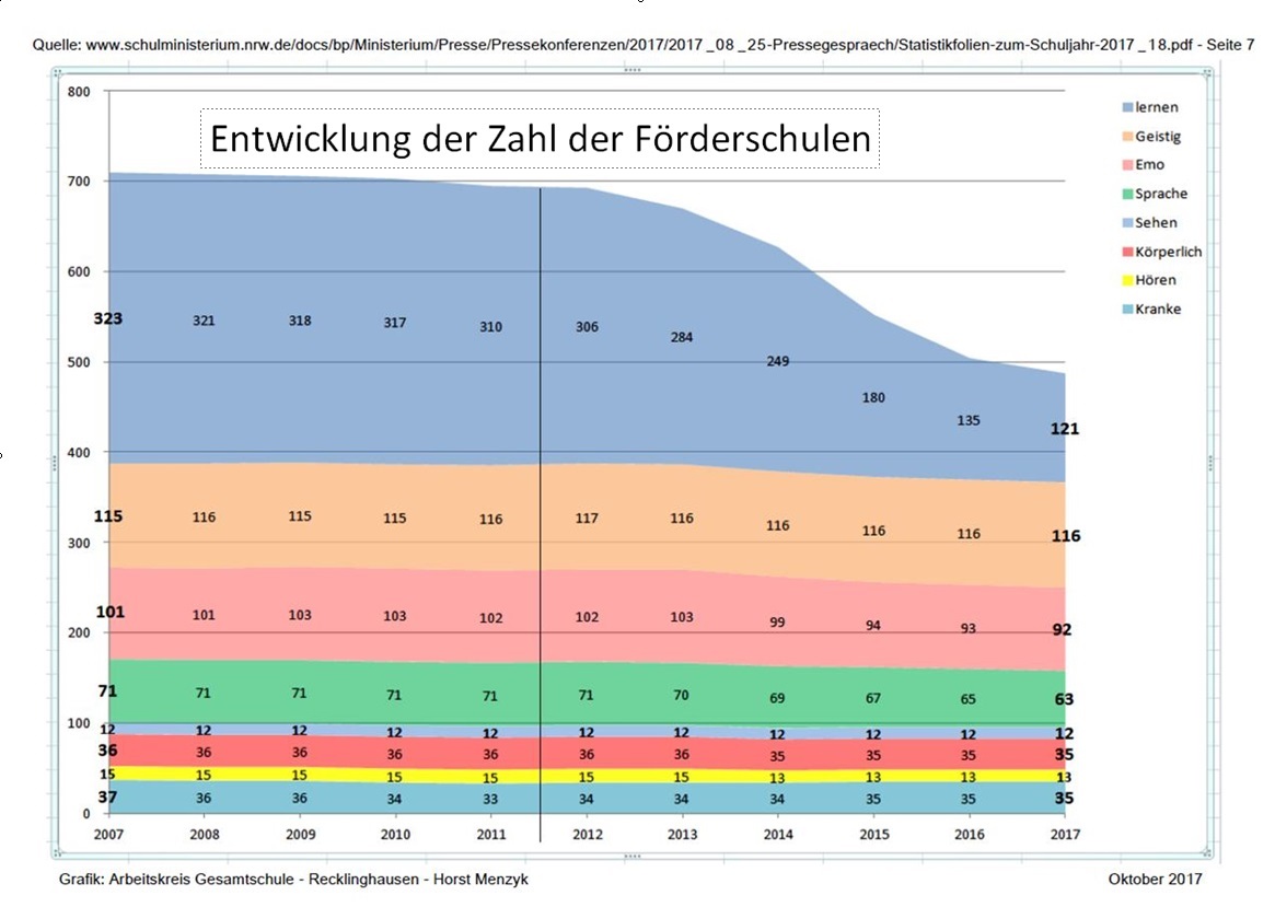 Schulträger in Kreisen erhalten die Möglichkeit, gemeinsam auf die Fortführung aller ihrer Förderschulen mit den Förderschwerpunkten Lernen, Emotionale und soziale Entwicklung sowie Sprache zu verzichten; das gilt auch für kreisfreie Städte.